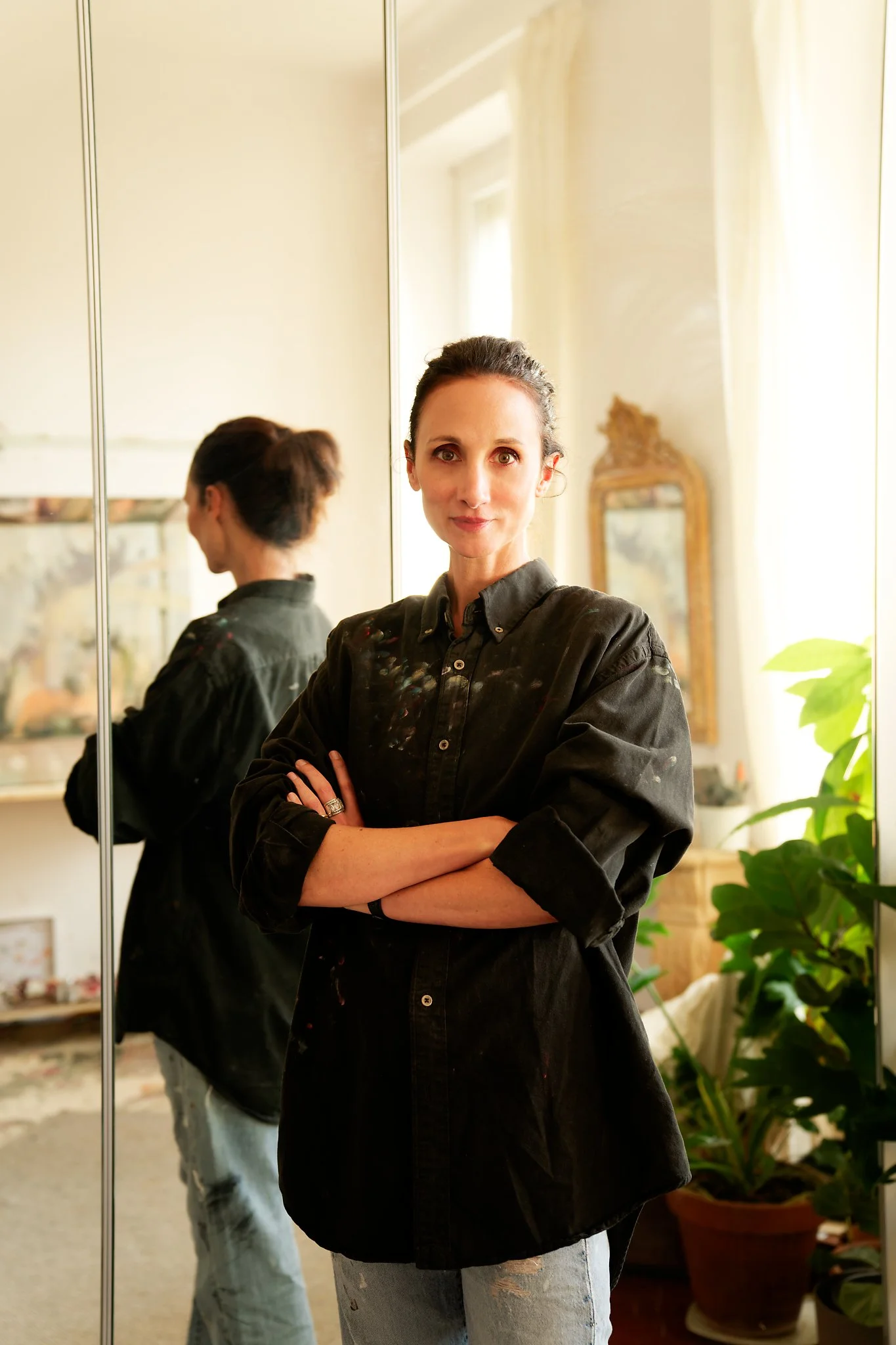 À PROPOS Nushka est née en 1983 à Lille. Elle a grandi dans un petit village du sud de la France, à côté de la mer, bercée par le soleil et une famille aimante. De cette enfance heureuse, Nushka tire une force tranquille qui la pousse à explorer différents modes d’expression : le violon, l’écriture, la couture, le modelage, et surtout, la peinture. À 13 ans, Nushka rencontre la peintre américaine Maggie Siner. Commence alors une relation forte de maître à élève qui sera déterminante pour le parcours de Nushka. Après neuf années d’études, que Nushka appelle « ses humanités », elle revient à la peinture et s’y consacre pleinement. Depuis 20 ans, elle explore la peinture avec la passion de l’enfance et le sérieux qui la caractérise. Sa peinture vise à trouver la limite entre figuration et abstrac- tion. Ses thèmes de prédilection sont les femmes, l’Histoire de l’art et la vie quotidienne. Après Sydney, Paris et New-York, Nushka vit désormais à Marseille depuis dix ans avec son mari et sa fille. DEMARCHE ARTISTIQUE Ses toiles montrent et représentent de multiples facettes d’un seul et même sujet : la beauté iconique, idéalisée, distante et intouchable. Nushka s’applique à la voiler, pour questionner l’importance du sujet dans l’existence de la scène. Le spectateur est toujours appelé au plus près des coups de pinceaux de l’artiste et froidement tenu à l’écart, un mouvement qui caractérise toutes les séries de Nushka et reflète sa propre personnalité. Nushka cherche à visiter la structure de la figuration : le sujet et la composition ne sont pour elle qu’un prétexte pour une recherche plus abstraite qu’est l’alchimie de la présence – ou l’absence – à soi. Instagram : https://www.instagram.com/fannynushka/ Site : https://nushka.fr/